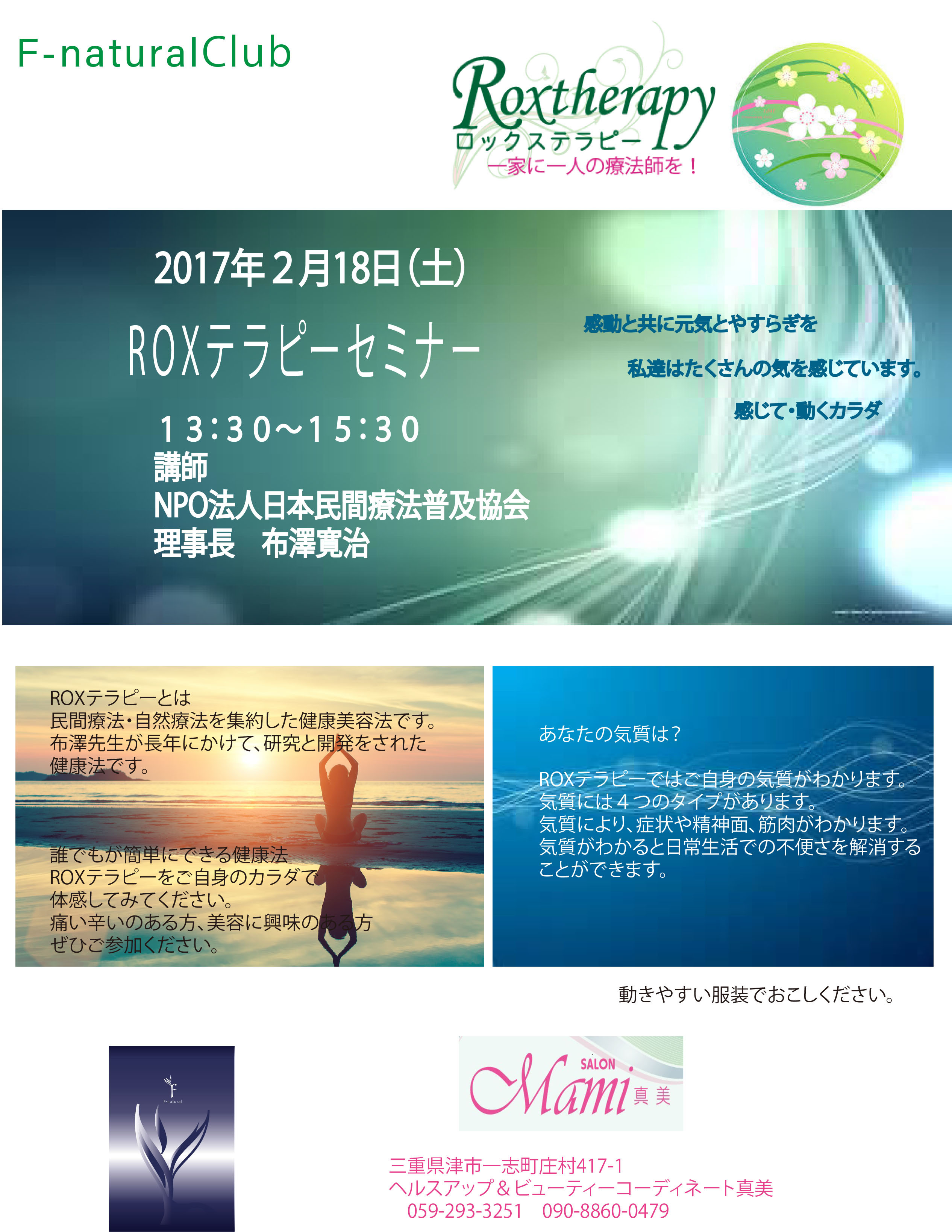・F-natural club中部、西日本のRoxtherapyセミナー
